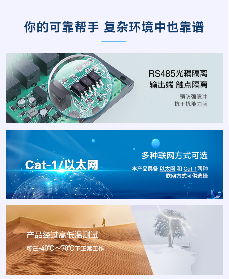 通讯接口 以太网+RS485 Cat1+RS485 以太网+RS485(光耦隔离) Cat1+RS485(光耦隔离)